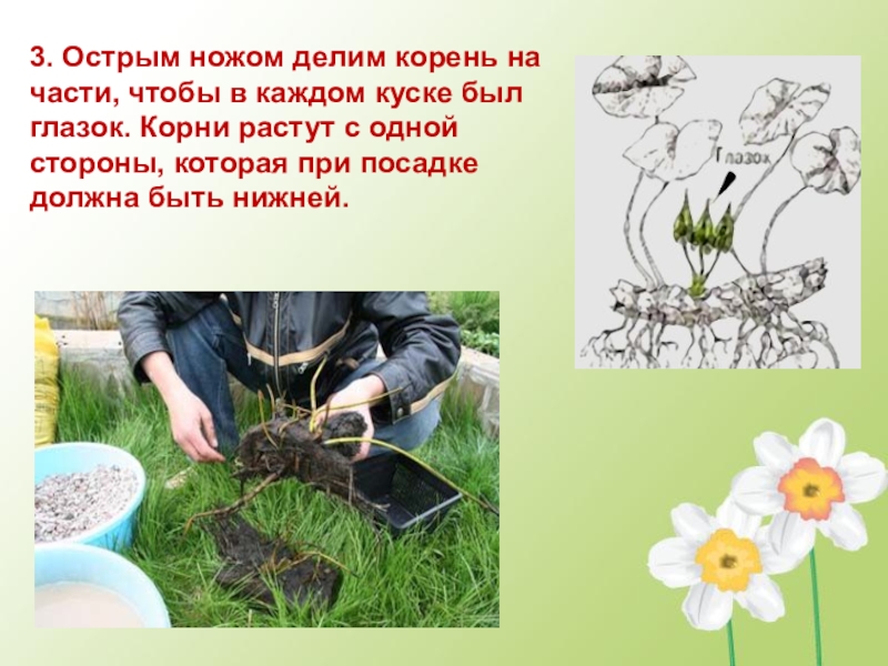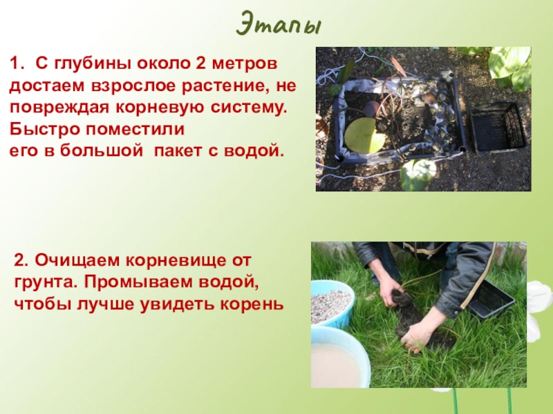 2. Очищаем корневище от грунта. Промываем водой, чтобы лучше увидеть корень