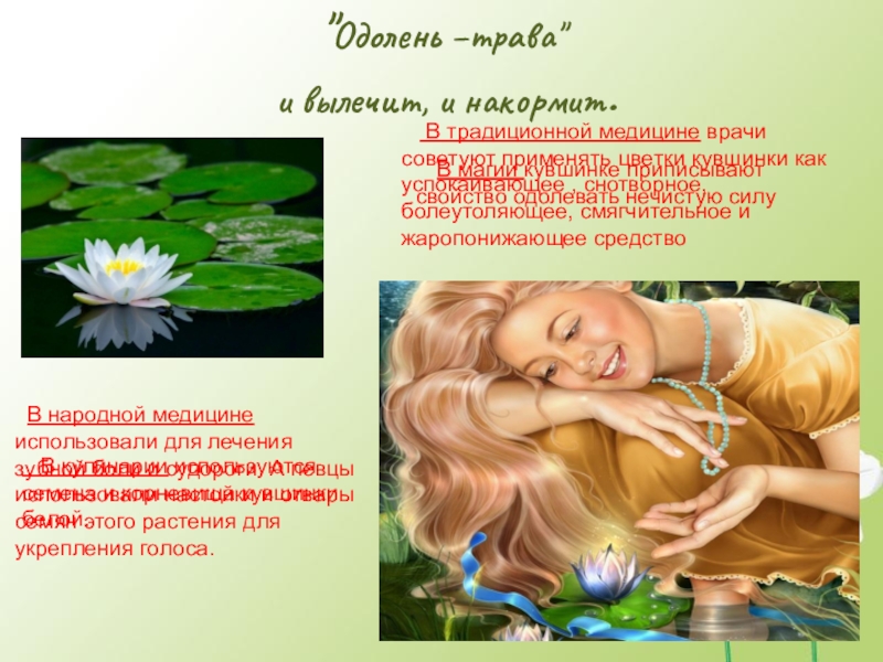 В магии кувшинке приписывают свойство одолевать нечистую силу