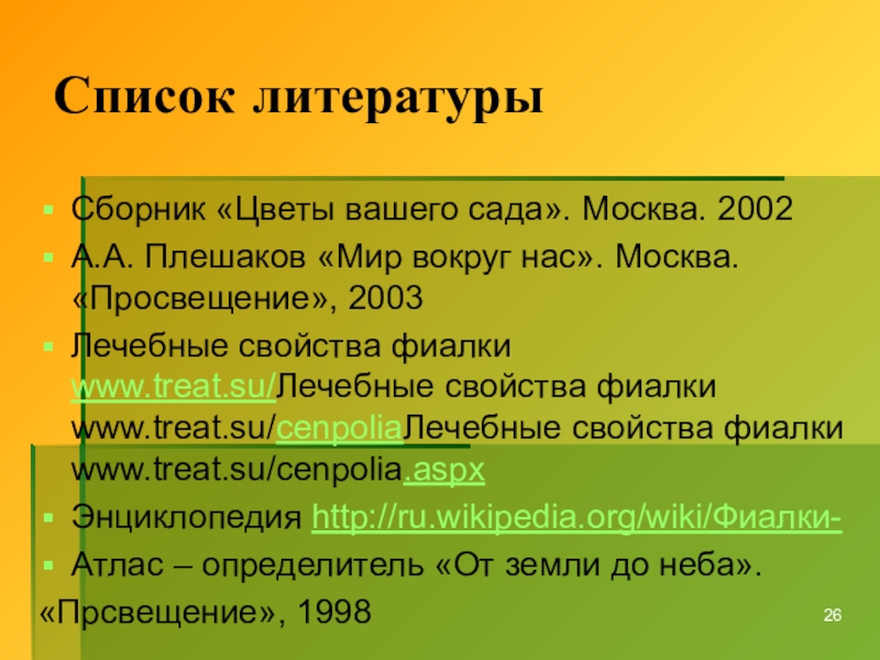 3. Изучить и проанализировать информацию о содержании фиалок;