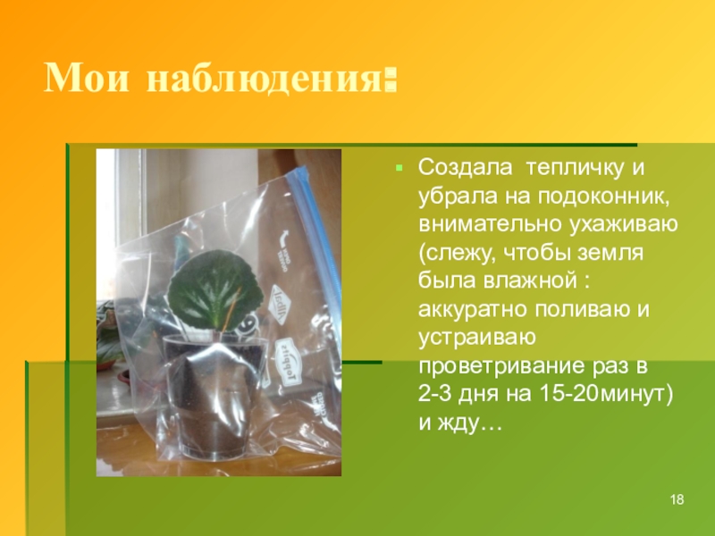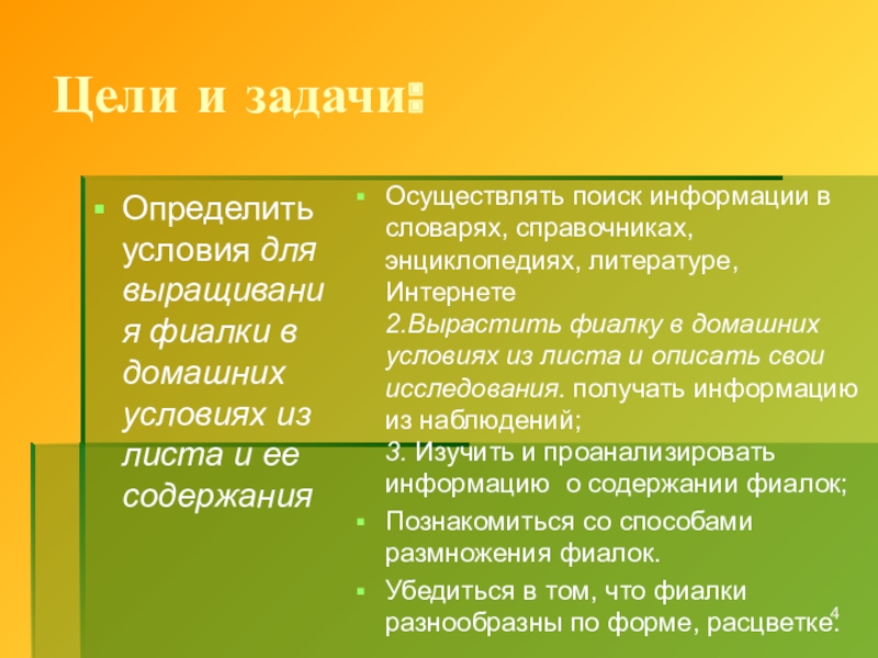 2.Вырастить фиалку в домашних условиях из листа и описать свои исследования. получать информацию из наблюдений;