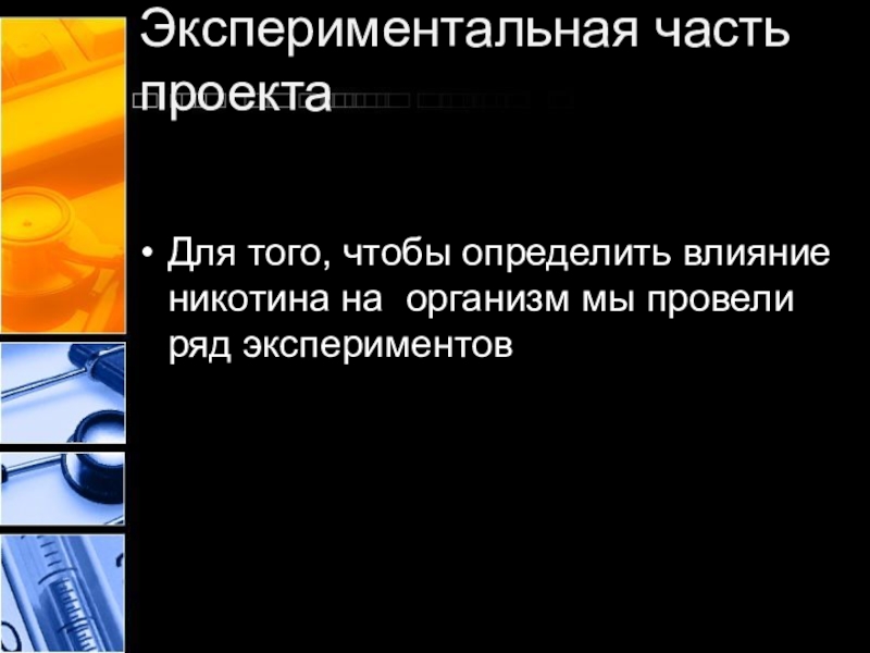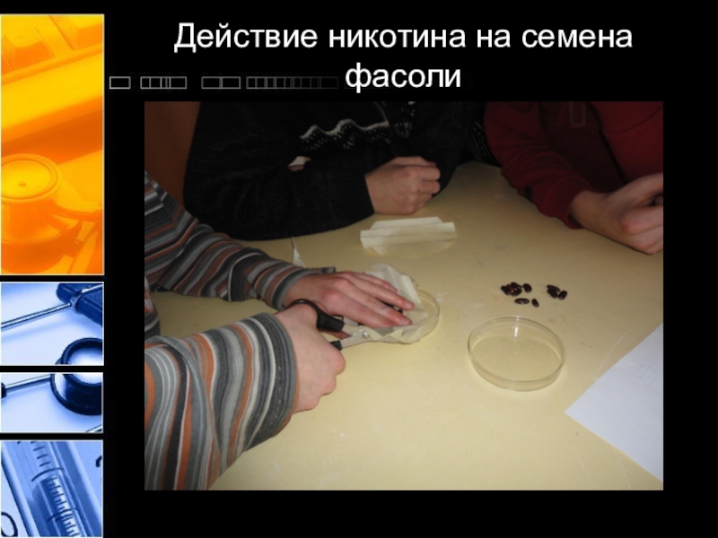поставлена нами из-за того, что мы часто сталкиваемся с курением среди подростков. И мы решили, показать им наглядным образом как влияет никотин на растущий и развивающийся организм. Для этого мы провели исследовательскую работу, состоящую из трех этапов.