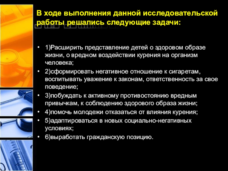 Слайд 3В ходе выполнения данной исследовательской работы решались следующие задачи: