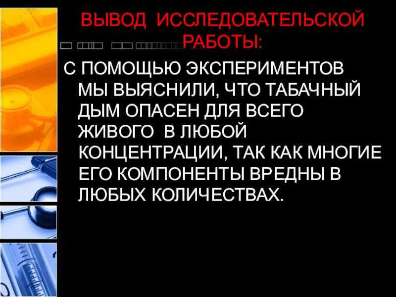 С ПОМОЩЬЮ ЭКСПЕРИМЕНТОВ МЫ ВЫЯСНИЛИ, ЧТО ТАБАЧНЫЙ ДЫМ ОПАСЕН
