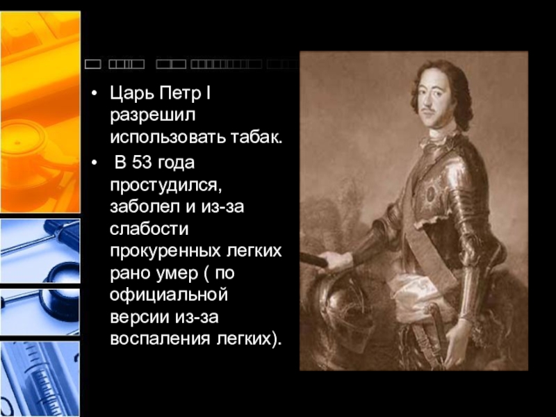 и из-за слабости прокуренных легких рано умер ( по официальной версии из-за воспаления легких).