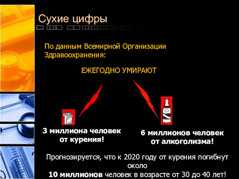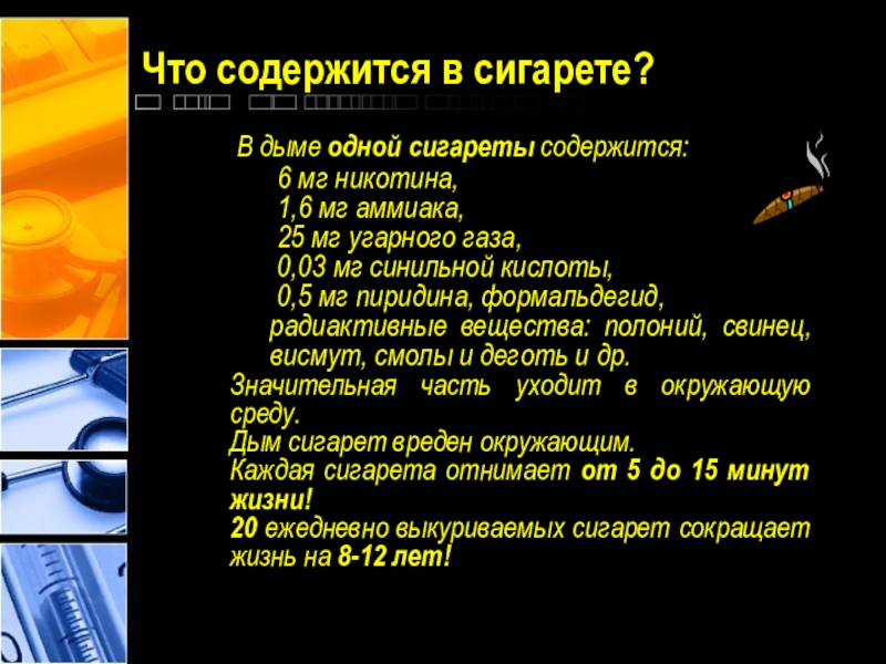 20 ежедневно выкуриваемых сигарет сокращает жизнь на 8-12 лет!
