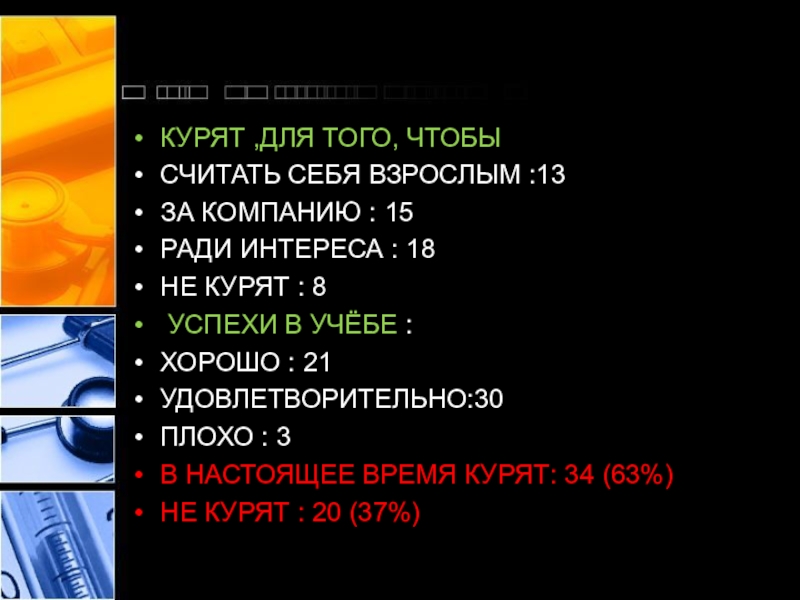 В НАСТОЯЩЕЕ ВРЕМЯ КУРЯТ: 34 (63%)