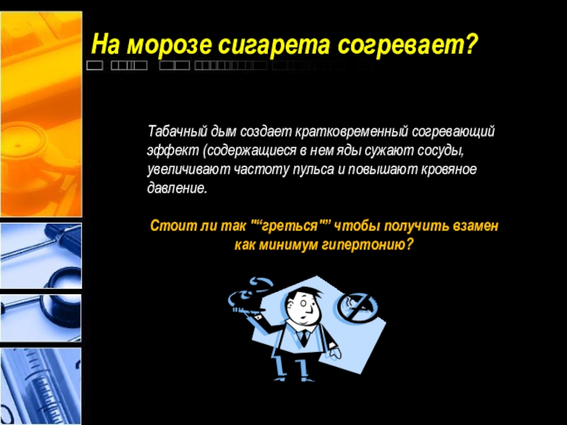 Табачный дым создает кратковременный согревающий эффект (содержащиеся в
