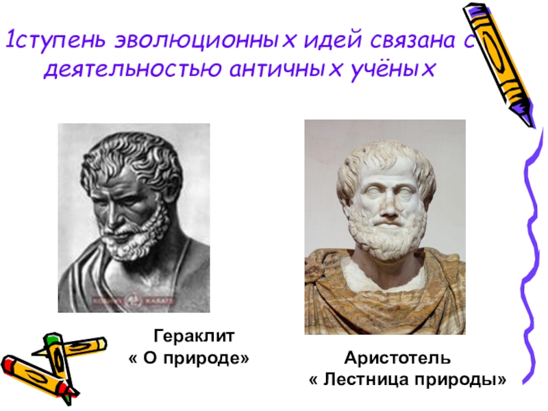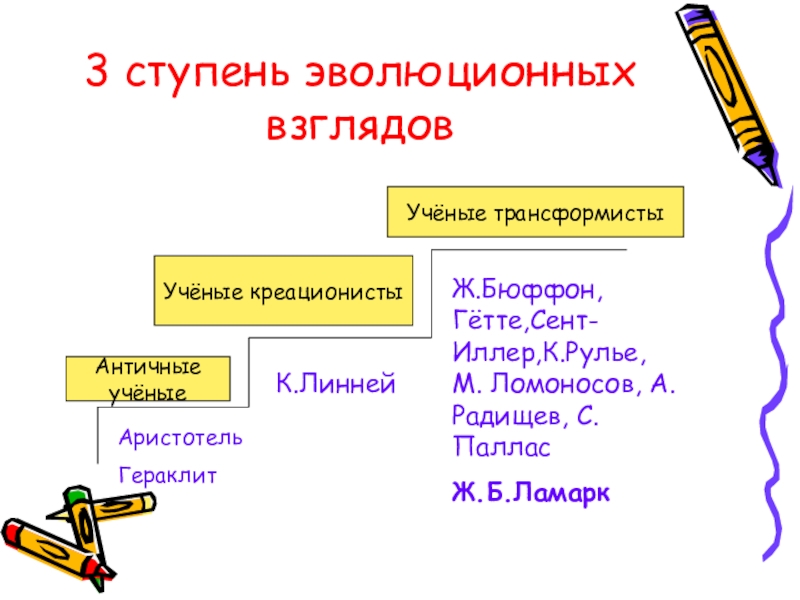 Цель: дать представление учащимся о развитии эволюционного учения в додарвиновский период