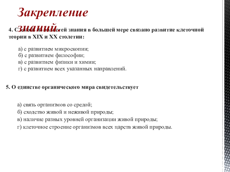 б) клетки многоклеточных организмов объединены в ткани по сходству строения и функций»;