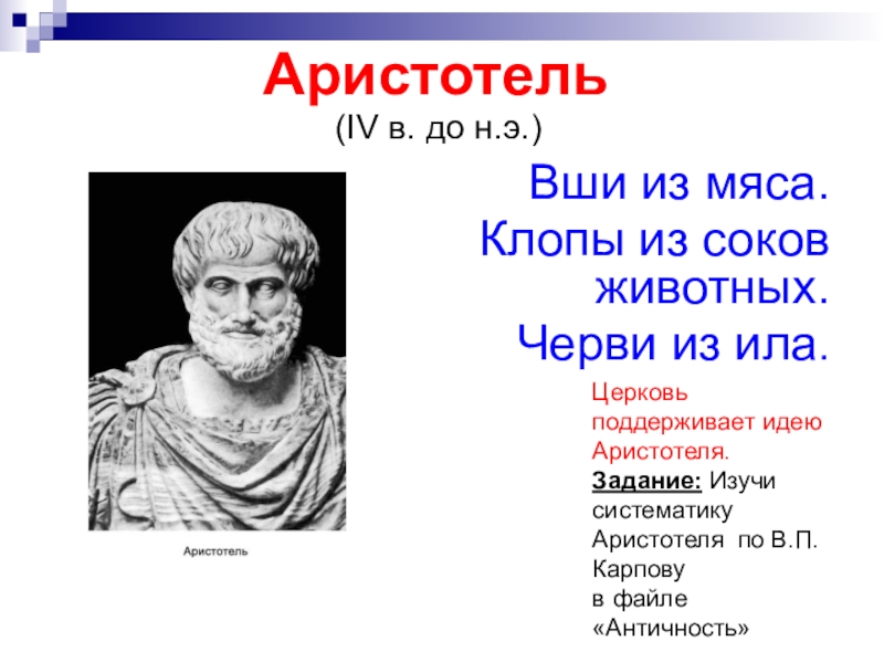Задание: Изучи систематику Аристотеля по В.П. Карпову