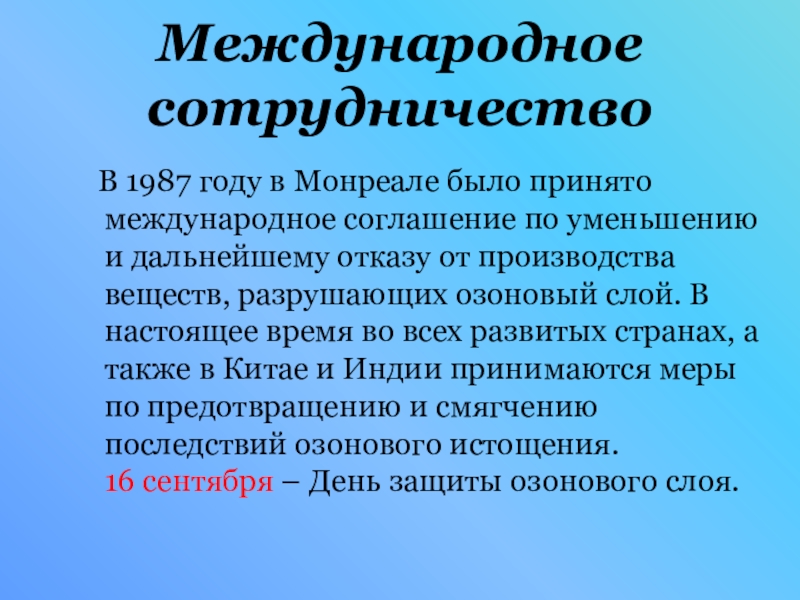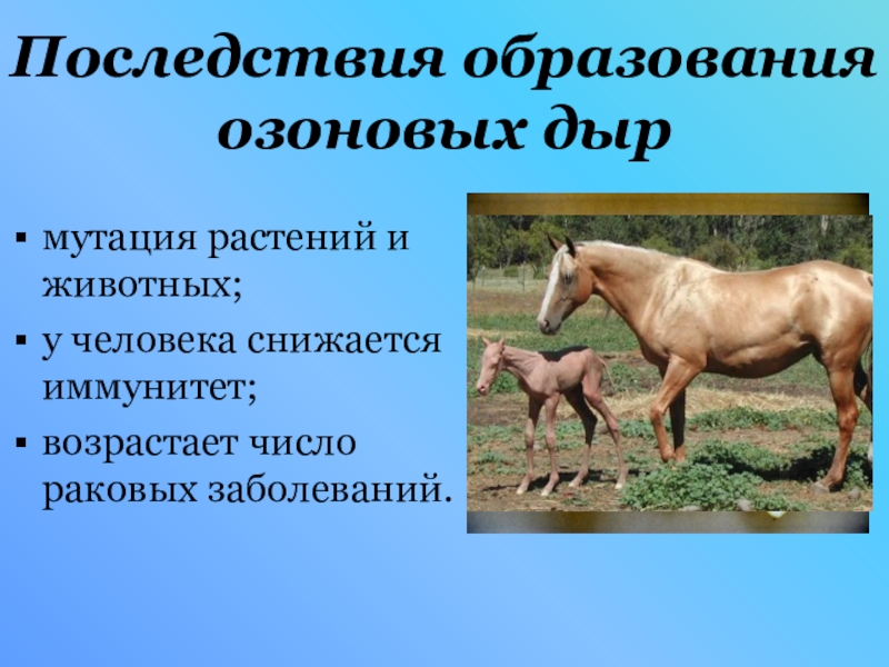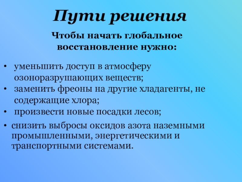 Снижение концентрации стратосферного озона - приводит к разрушению озонового слоя.