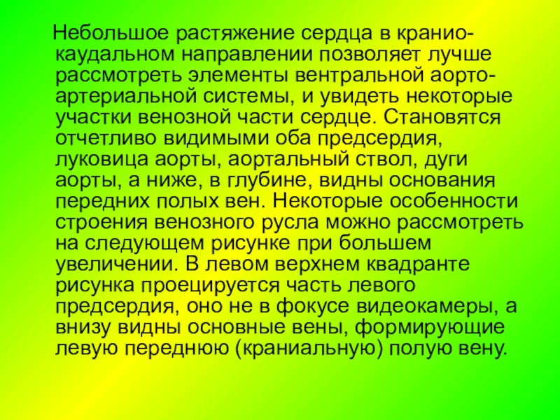 Слайд 8 Небольшое растяжение сердца в кранио-каудальном направлении позволяет лучше рассмотреть