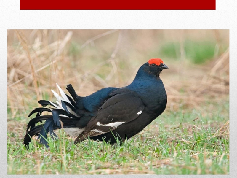 Слайд 4Эндемичный кавказский тетерев встречается в зарослях рододендрона и черники. Характерными являются