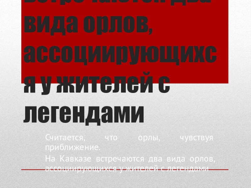 Слайд 10Считается, что орлы, чувствуя приближение смерти, взмывают в небо и умирают