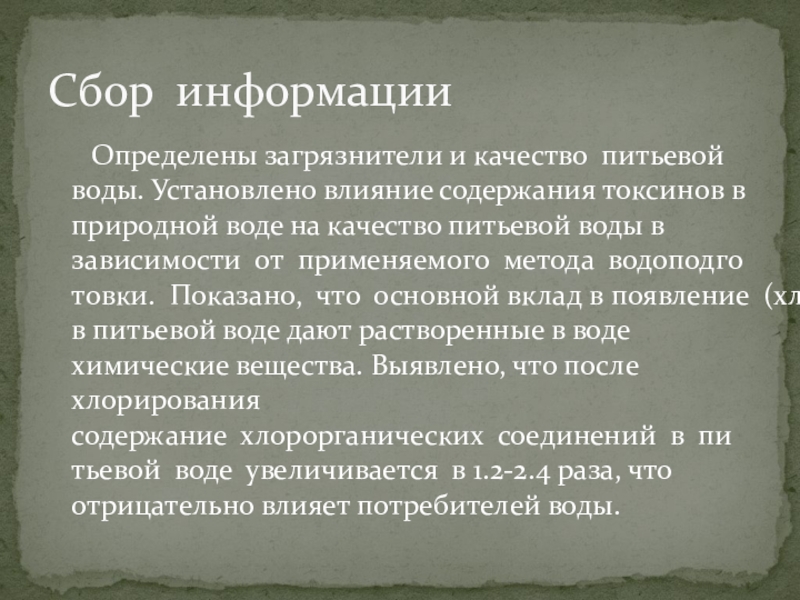 Обеззараживание воды, или ее дезинфекция, заключается в полном освобождении воды от болезнетворных бактерий. Так как полного освобождения ни отстаивание, ни фильтрование не дают, с целью дезинфекции воды применяют хлорирование и другие способы,