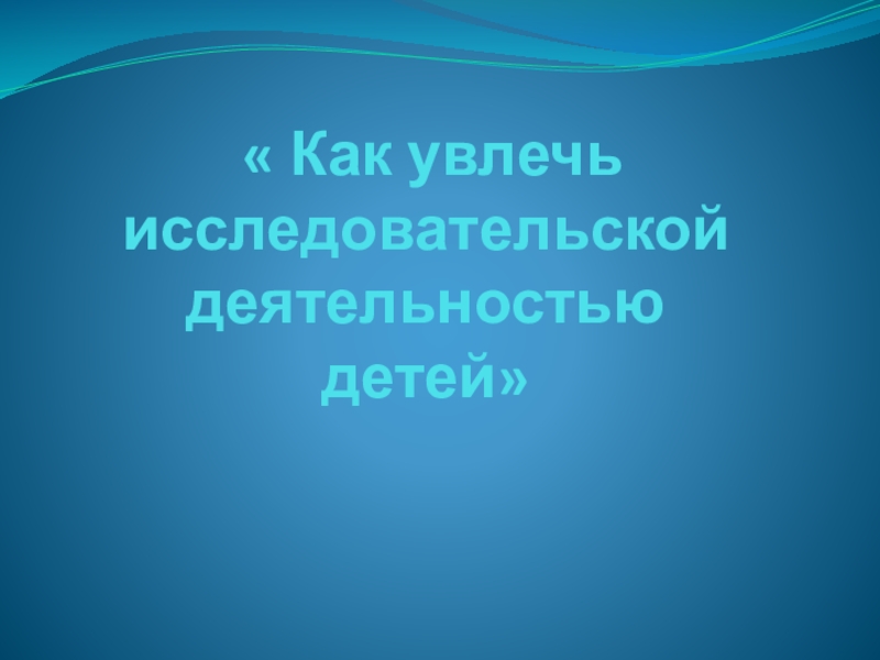 Слайд 1 « Как увлечь исследовательской деятельностью детей»