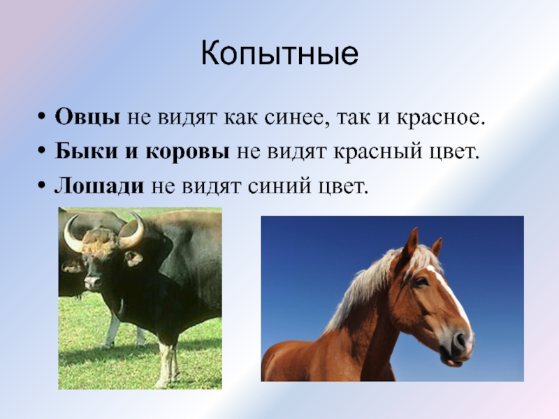 В ходе работы я выяснила: есть ли цветное зрение у животных, какие цвета они не видят, как воспринимают мир в отличие от нас.