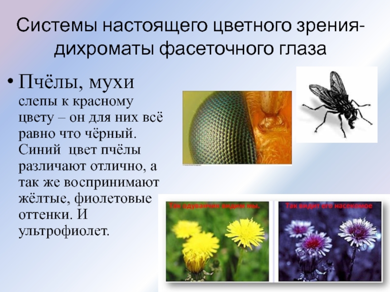 Слайд 5Системы настоящего цветного зрения- дихроматы фасеточного глаза