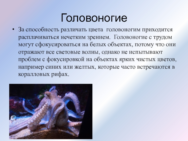 За способность различать цвета головоногим приходится расплачиваться нечетким зрением. Головоногие