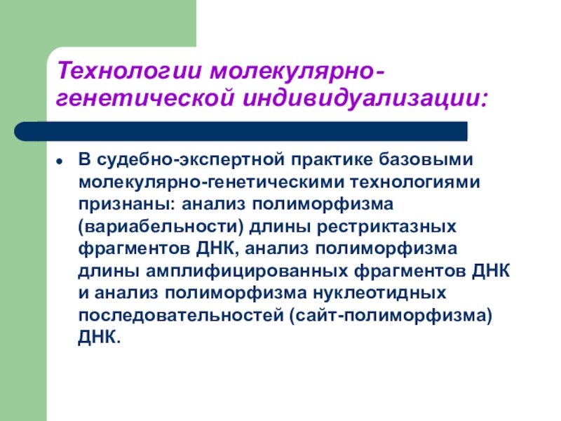 Слайд 14Технологии молекулярно-генетической индивидуализации: