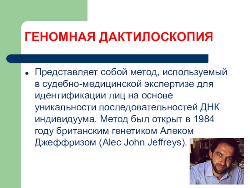 Слайд 9ГЕНОМНАЯ ДАКТИЛОСКОПИЯ