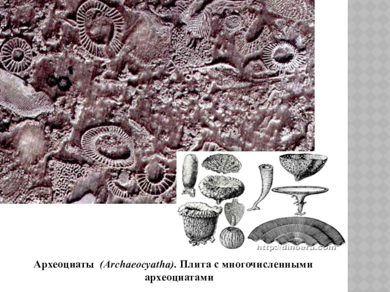 Слайд 15Археоциаты (Archaeocyatha). Плита с многочисленными археоциатами
