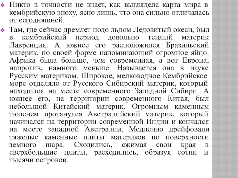 Слайд 4Никто в точности не знает, как выглядела карта мира в кембрийскую