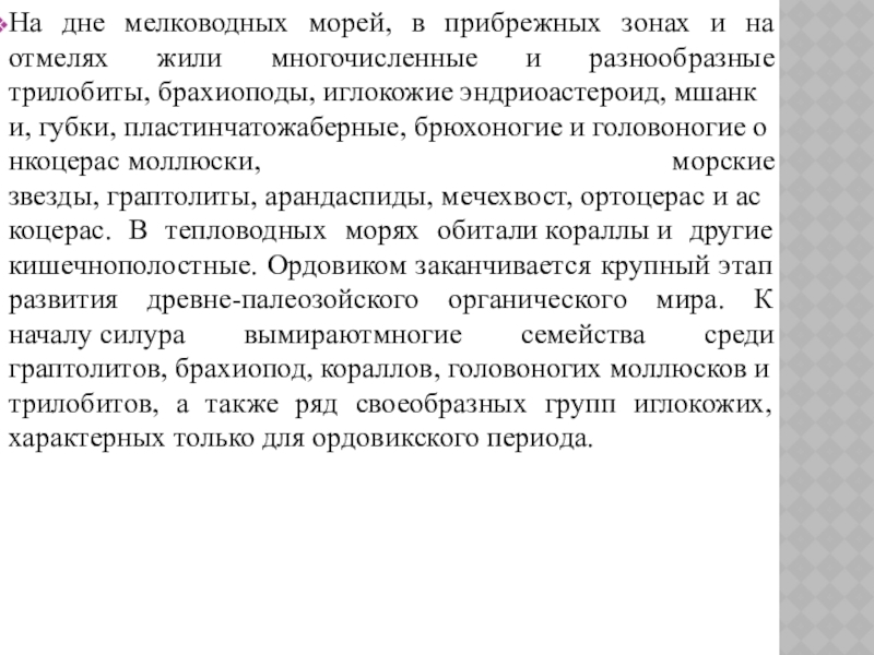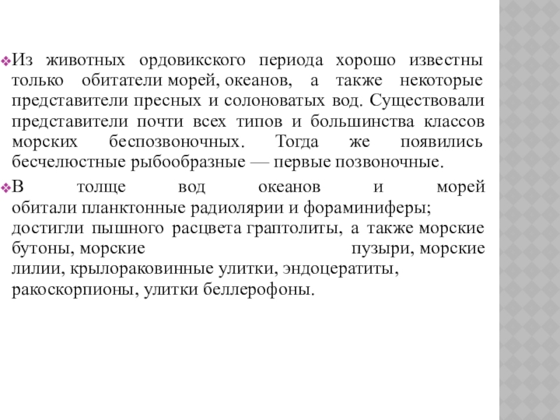 Слайд 37Из животных ордовикского периода хорошо известны только обитатели морей, океанов, а также некоторые