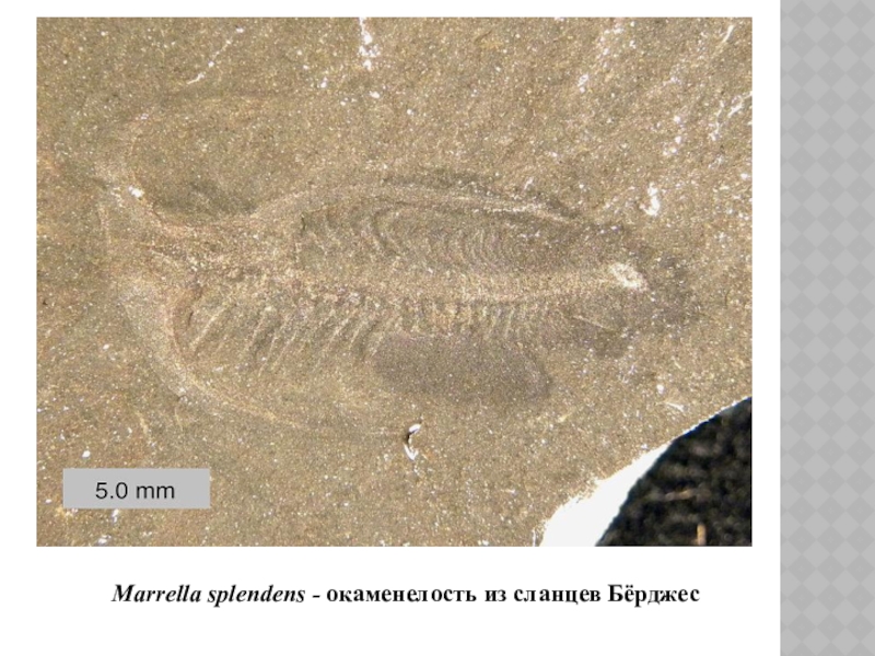 Слайд 22Marrella splendens - окаменелость из сланцев Бёрджес