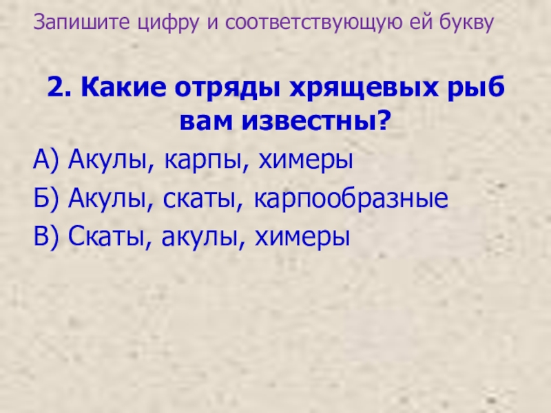 Б) Хрящевой скелет, отсутствие жаберных крышек, 5-7 жаберных щелей, наличие плавательного пузыря.