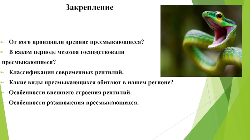 Среди рептилий из 16-17 отрядов, существовавших в период расцвета, уцелело лишь 4.