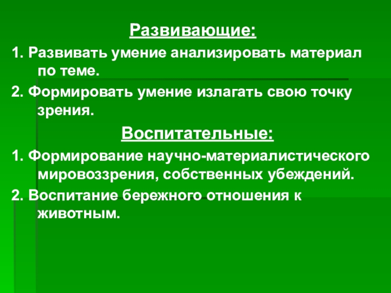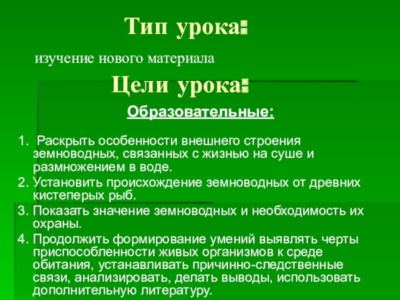 4. Продолжить формирование умений выявлять черты приспособленности живых организмов к среде обитания, устанавливать причинно-следственные связи, анализировать, делать выводы, использовать дополнительную литературу.