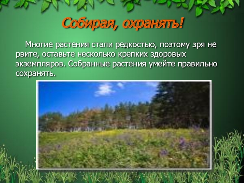 Многие растения стали редкостью, поэтому зря не рвите, оставьте несколько