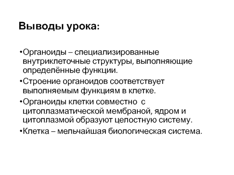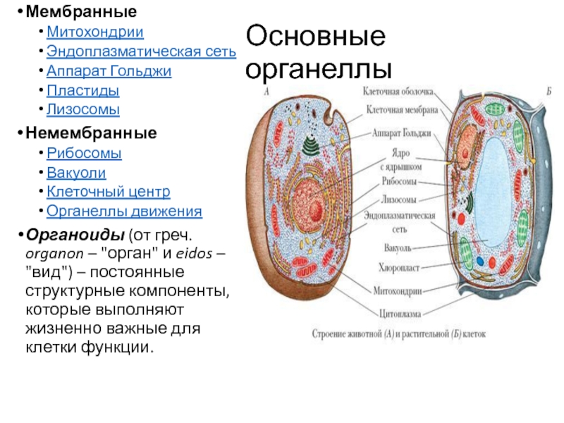 Органоиды – специализированные внутриклеточные структуры, выполняющие определённые функции.