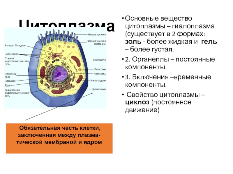 Основные вещество цитоплазмы – гиалоплазма (существует в 2 формах: золь -