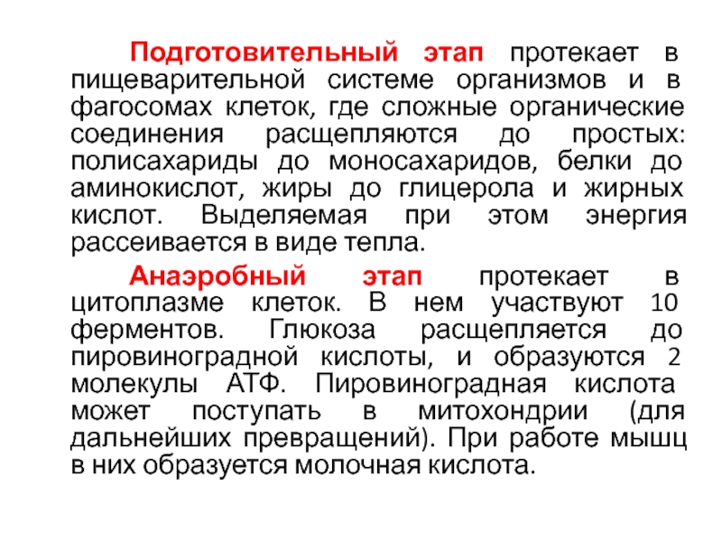 Слайд 50 Подготовительный этап протекает в пищеварительной системе организмов и в фагосомах клеток,
