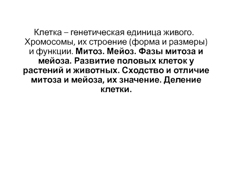 Слайд 57Клетка – генетическая единица живого. Хромосомы, их строение (форма и размеры)