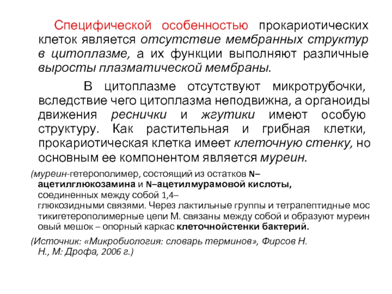 Слайд 16 Специфической особенностью прокариотических клеток является отсутствие мембранных структур в