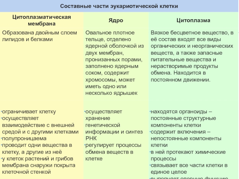 и кариоплазмы (ядра). В цитоплазме различают гиалоплазму (цитоплазматический матрикс), органоиды и включения. Снаружи клетка покрыта оболочкой, основным компонентом которой является элементарная (биологическая) мембрана.