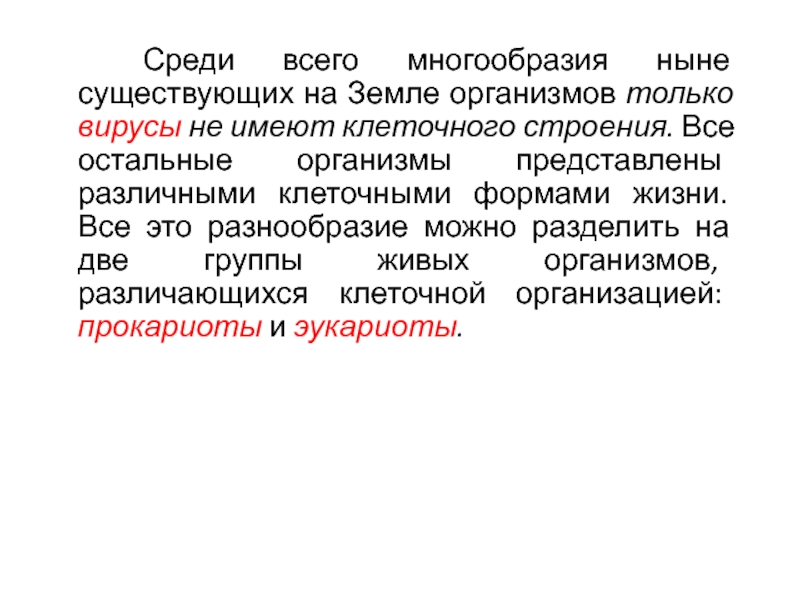 Слайд 14 Среди всего многообразия ныне существующих на Земле организмов только вирусы не