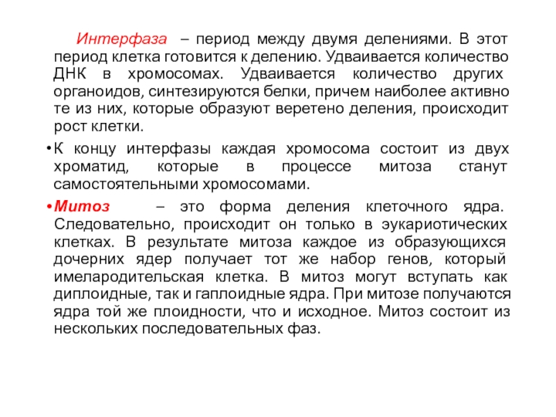 Слайд 61 Интерфаза – период между двумя делениями. В этот