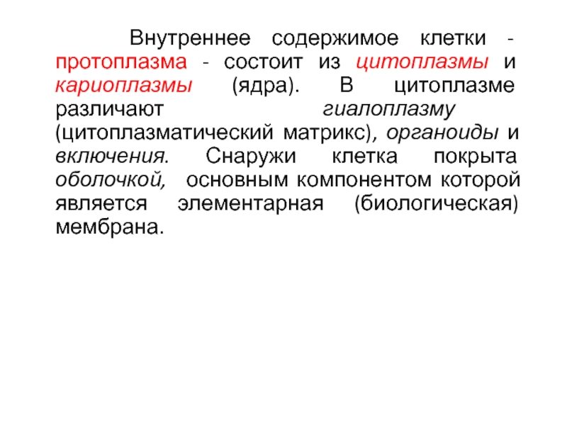 Слайд 25 Внутреннее содержимое клетки - протоплазма - состоит из цитоплазмы