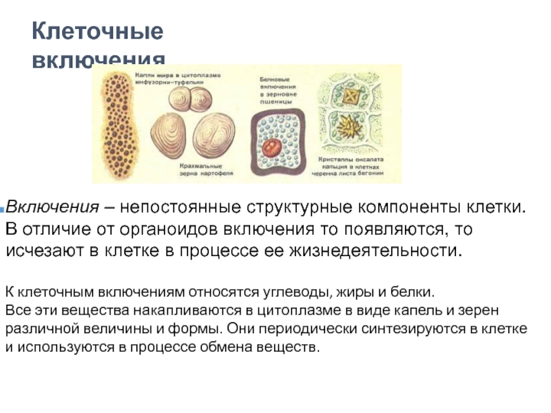 В цитоплазме находятся органоиды (или органеллы) и включения.