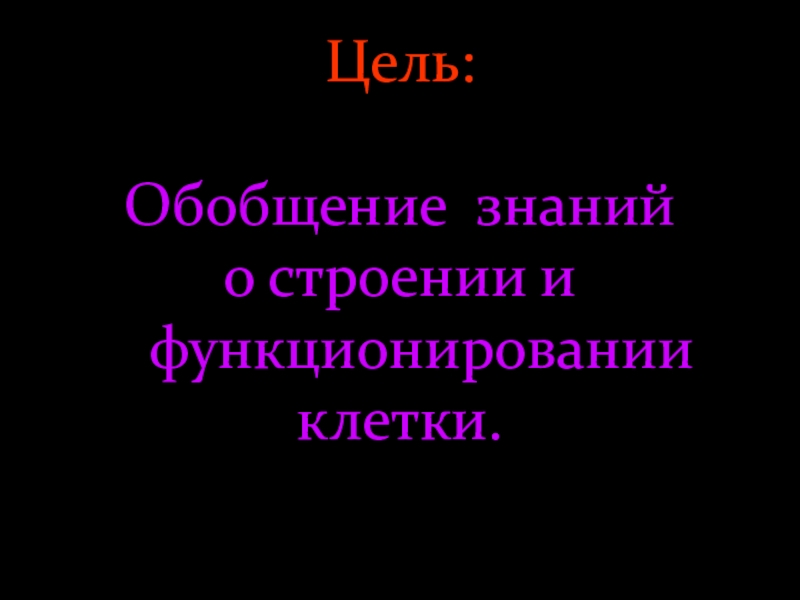 Цель: Обобщение знаний о строении и функционировании клетки.
