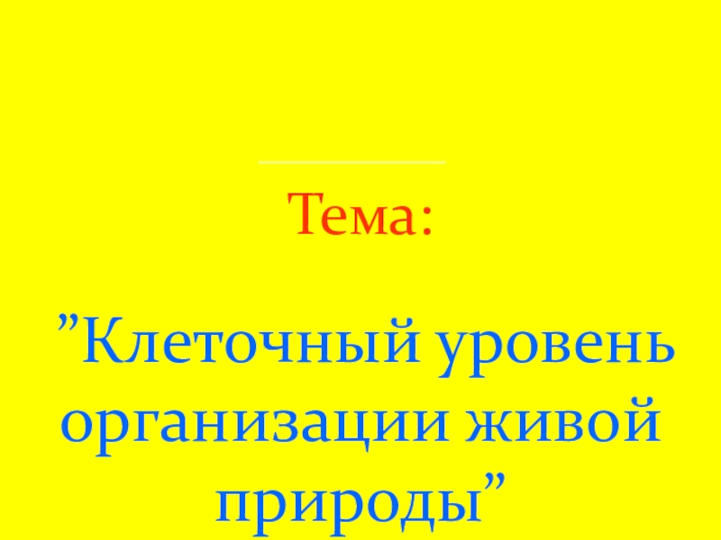 Слайд 1Тема: ”Клеточный уровень организации живой природы”