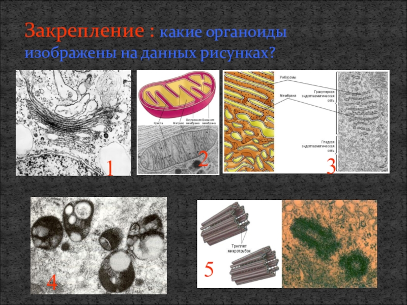 Слайд 10Закрепление : какие органоиды изображены на данных рисунках?