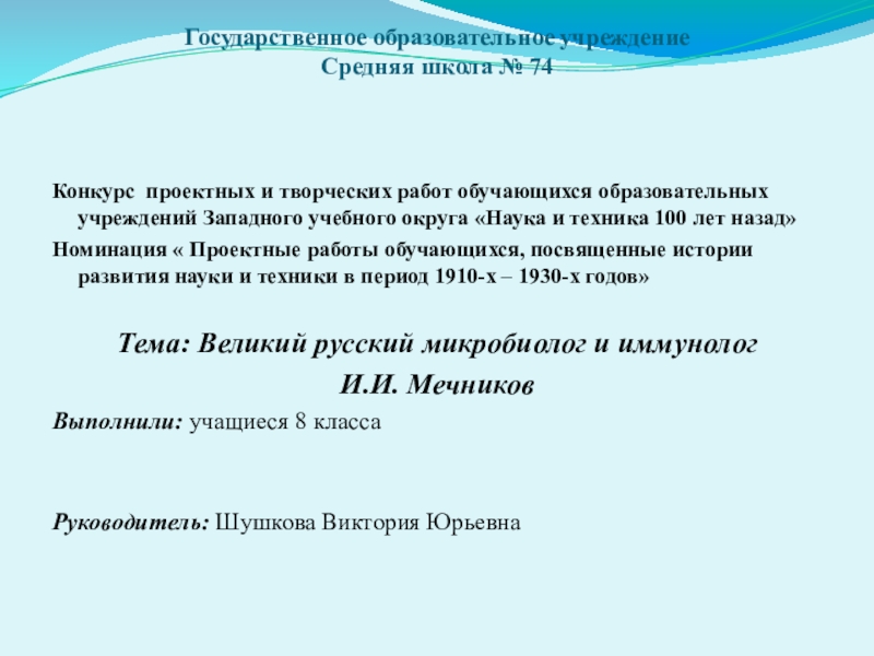 Тема: Великий русский микробиолог и иммунолог