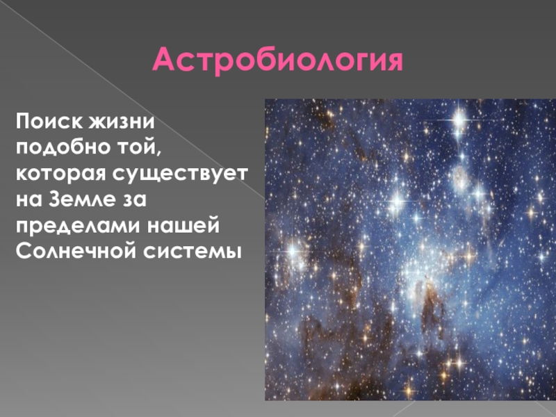 Слайд 18Астробиология (атра –звезда, биос –жизнь, логос –наука)