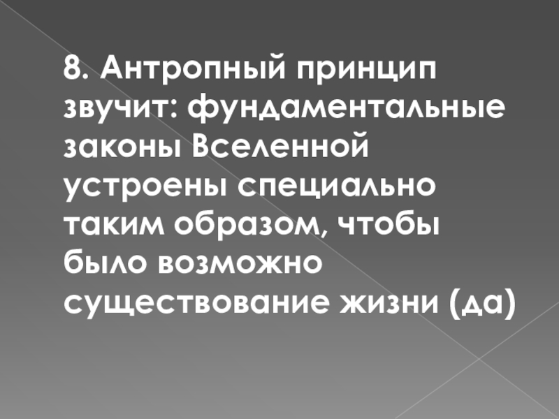 Слайд 1108. Антропный принцип звучит: фундаментальные законы Вселенной устроены специально таким образом,