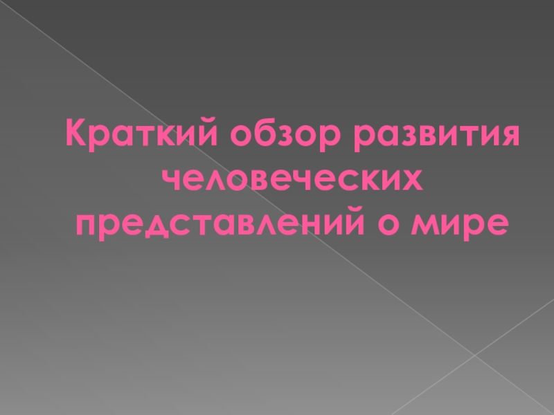 Слайд 6Краткий обзор развития человеческих представлений о мире
